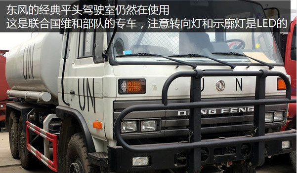 東風(fēng)的經(jīng)典駕駛室仍然在生產(chǎn)并裝車(chē),這個(gè)聯(lián)合國(guó)維和部隊(duì)涂裝的東風(fēng)車(chē)采用LED的轉(zhuǎn)向燈和示廓燈,與時(shí)俱進(jìn)。